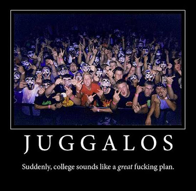 To make a long story short, pro wrestling has always been a staple on the Insane Clown Posse GATHERING shows but I have never wanted to work one of their events. Why? I'm not stupid and I know the Posse personally and even they've told me that the Juggalos are 'f'n crazy'. That was the main reason I've never had a desire to work the event is that every report from every wrestler who has ever worked there, it is described as one huge MENTAL WARD. The Juggalos have even been described by Violent J himself as on the lunatic fringe and insane and maniacal masters of malcontent.
